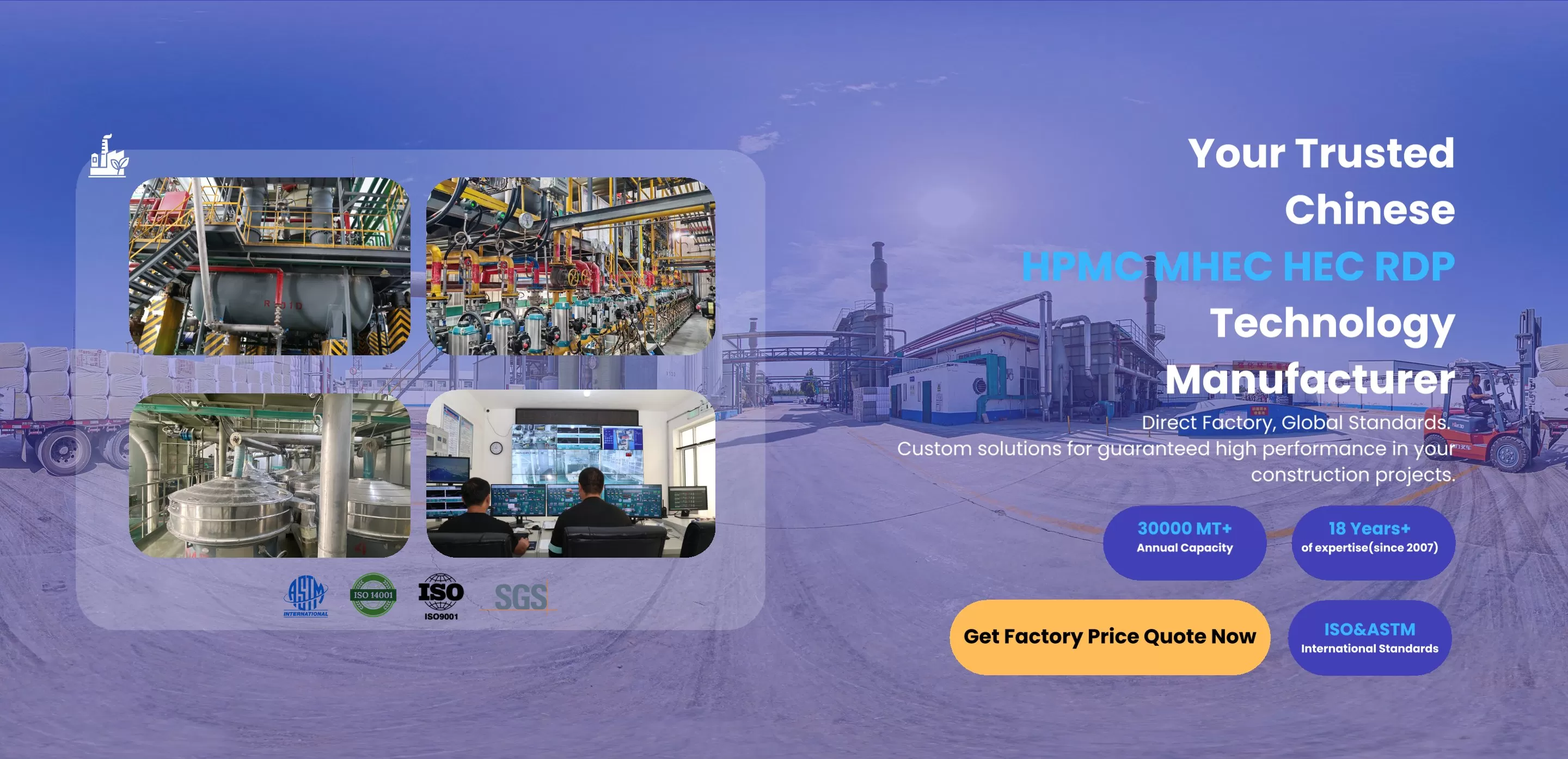 Since the foundation of 2007, our products include HPMC, HEC, MHEC, RDP, PCE, PVA, defoamers, and calcium formate, widely applied in construction, coatings, and daily chemicals empowered the global formulators with sustainable cellulose ether technology.